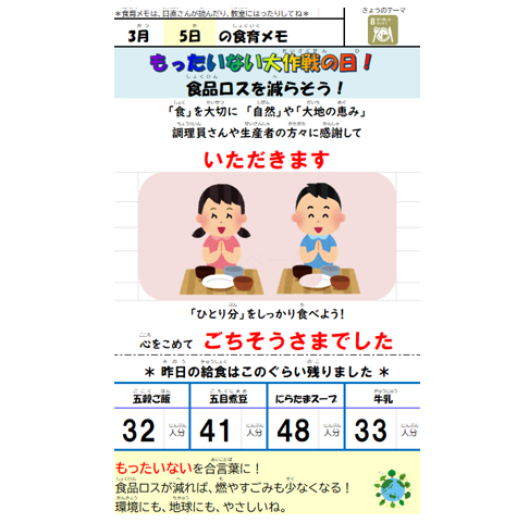 3月5日(木)今日の給食