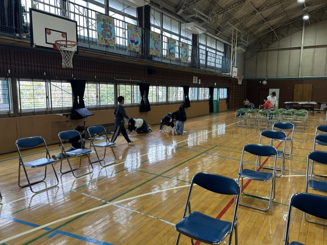 今日の6時間目は、4・5年生による卒業式準備でした。会場となると体育館や渡り廊下、昇降口など、一生懸命掃除してくれました。紅白幕、来賓や保護者用のパイプイス、演台などの設置や準備もしてくれました。準備万端です!