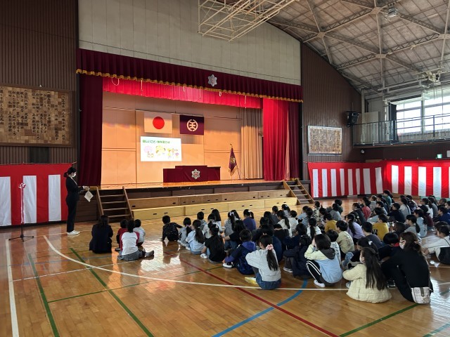 修了式後に、学校外で活躍した松が谷っ子の表彰と、春休みの生活についての話がありました。