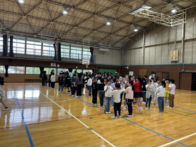 今朝の音楽朝会は、第1回目というこで、「うたでなかよくなろう!」をテーマに歌いました。最初は「幸せなら手を叩こう」で、手や足を動かしながら、ハイタッチをしながら歌いました。校歌では、ただ歌うのではなく、自分の番が来たら立って歌うリレー形式で合唱しました。たくさん体を動かしながら、楽しく歌うことができました。