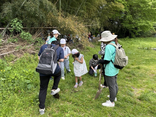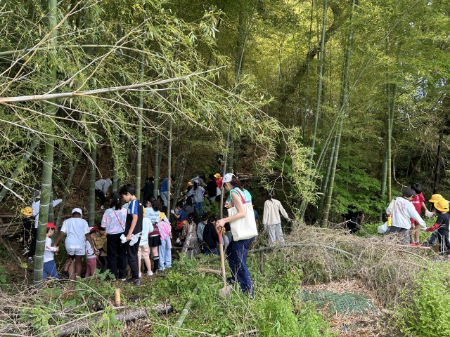 今日の3・4時間目に、1年生と6年生とそよかぜ学級で、松が谷高校にたけのこ掘りに行きました。今年は早くに出てきていて、れいねんは