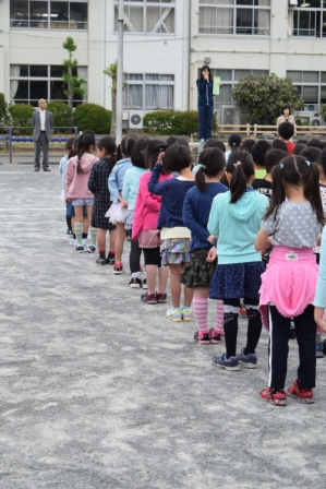16日(月)全校朝会がありました。校長先生から、朝の挨拶が少しずつよくできるようになっていること、お客様には会釈をしましょうというお話がありました。