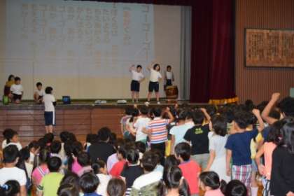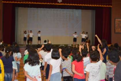 続いて応援団が入って、応援歌の練習です。応援団のリードで、しっかり歌いました。