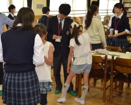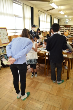 19日(木)今年度3回目の放課後英語活動がありました。今日は名前や趣味をカードに書いて、相手を見つけてカードの交換です。「My name is ・・・」と自分を紹介しながら楽しみました。