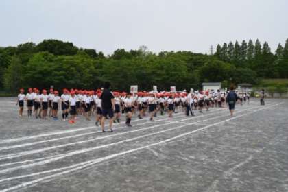 20日(金)第1回目の全校練習がありました。入場の練習ではプラカードを先頭に、足並みそろえて、きれいに入場できました。