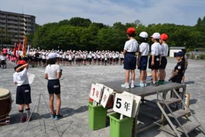 24日(火)今日は2回目の全校練習がありました。開会式、準備体操等をやりました。1年生のはじめの言葉もじょうずでした。