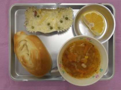 ソフトフランスパン マカロニグラタン ミネストローネ 河内晩柑 牛乳