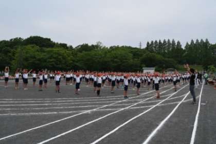プログラム1番、準備体操です。全校朝会で何回か練習してきたので、初めのころに比べてきちんとできるようになりました。