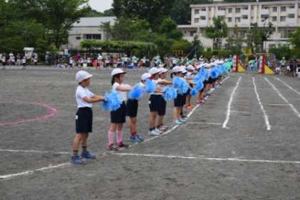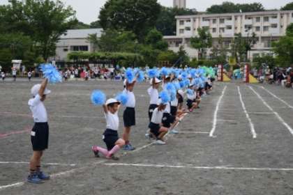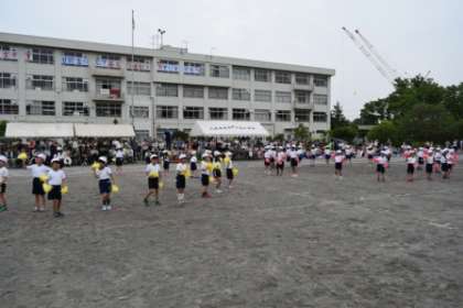 最後は隊形も変化してコースの周りに並びました。フィニッシュもきまって、素晴らしい1・2年生の表現でした。