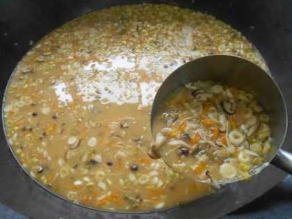 ぶどう豆は、「畑の肉」といわれるほど栄養豊富な大豆の煮豆です。ぶどう粒のようにふっくらと仕上がりました。具沢山のきのこ汁には、豚肉・大根・人参・こんにゃく・長ねぎ・しめじ・えのき・椎茸・白ごまが入っています。