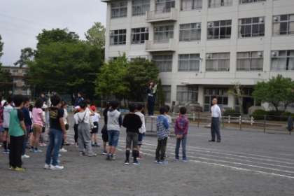 15日(月)全校朝会を行いました。前回に引き続き、ラジオ体操の練習をしました。今日は体育委員会の児童が前に出て、お手本を示してくれました。その後、生活当番の担当の先生から今月の目標「学校のきまりをまもろう」についてお話がありました。