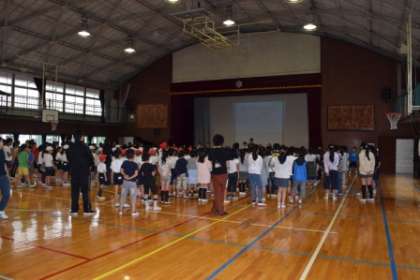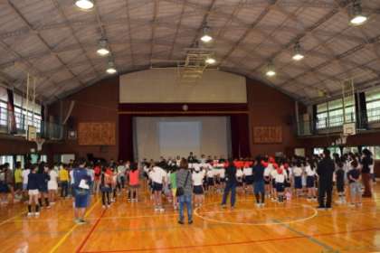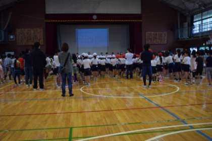 18日(木)今朝は体育館で音楽集会です。運動会の歌を全校で元気いっぱいに練習しました。