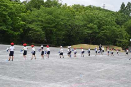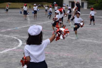 24日(水)運動会の練習も仕上げの段階に入ってきました。1年生・2年生の演技では、本番に使うポンポンを持って踊っていました。