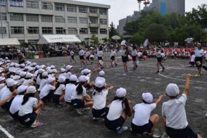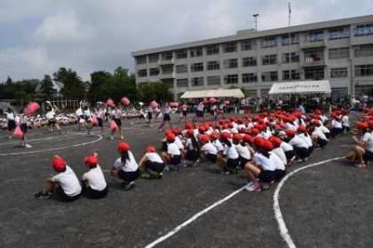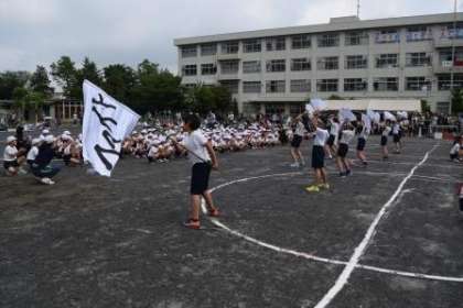 太鼓の音に合わせて、手拍子をして、最後は赤も白も「オッー!」と元気いっぱい応援です。