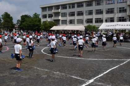 プログラム4番 1年生・2年生による表現「ぼく八スペシャル」です。スタートの位置について、いよいよ始まりました。練習でできるようになったことを忘れずに、がんばります。