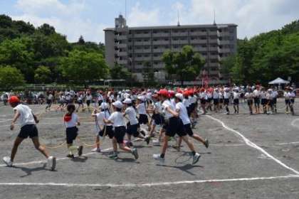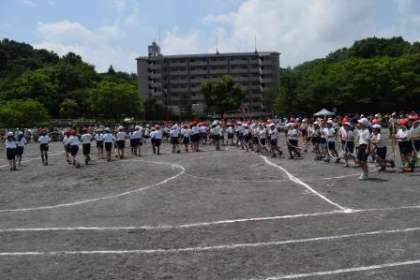 立ち上がって、プラスの隊形のまま、大回転だ。内側の人が1.5m行く間に、外側の人は15m移動するから大変だ。でも、まっすぐ回ったぞ。