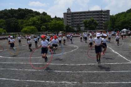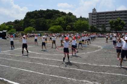 いよいよ練習を重ねてきたフラフープを腰で回す瞬間です。みんな一斉に回っています。