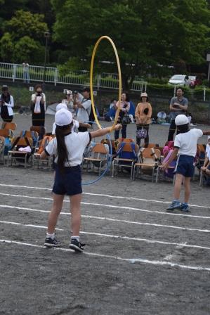 今度は片手で回して、そして二人組でも回して、最後にジャンプ。