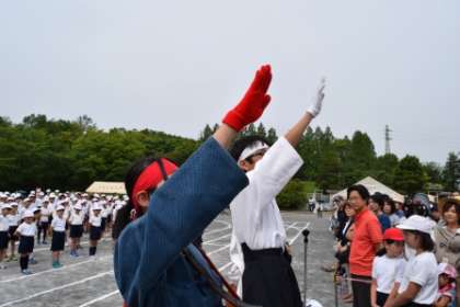 「誓いの言葉です。」応援団長、すてきね。6年生になったら、うちの子も応援団長にしよう。明日から大きい声が出せるように特訓ね。