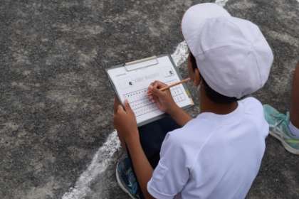 「プログラム3番、5年生による100m走です。」5年生が入場門に集まっているわ。去年は80mだったけど、今年は100m。頑張って最後まで走りきってほしいわね。うん、採点係も来て準備万端。でも、20ページつくって、目が疲れたので午後1時まで休憩するよ。