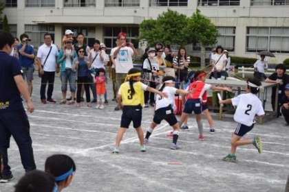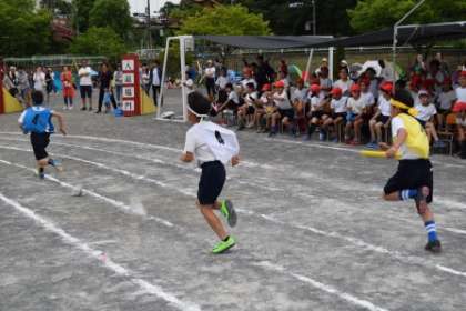さあ、第三走者から第四走者へ。みんな、がんばれー。