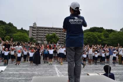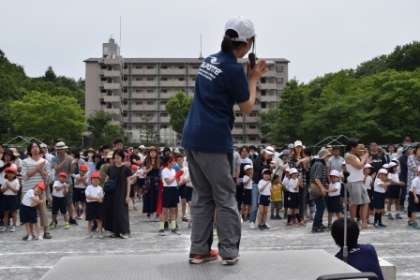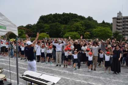 「練習してみましょう。パン、パン、手を上に。パン、パン、手を下に。」このダンスはかんたんじゃのお。