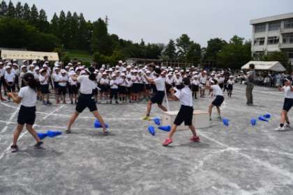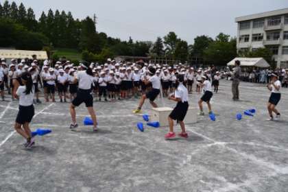 あれ、応援団がメガホンを置いたぞ。応援せんのか。にゃんこスターだー。