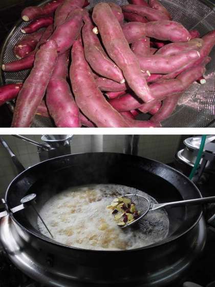 さつまいもを乱切りにして油で揚げ