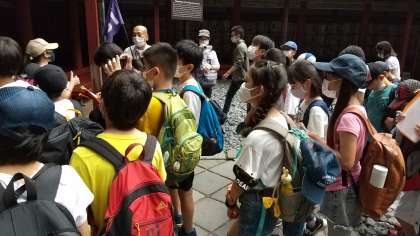 眠り猫が意外に小さいことに、驚きの表情です。