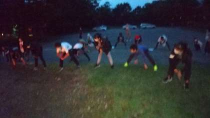 続いて、炎を囲み、ソーラン節を踊ります。腰の低さ、力感ある動きは、さすが6年生です。