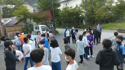 朝会は宿舎前