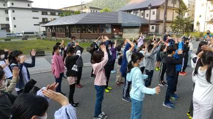 朝会は宿舎前で