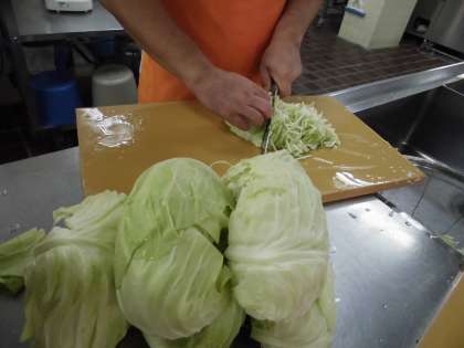 細い短冊きりにしたキャベツをボイルします。