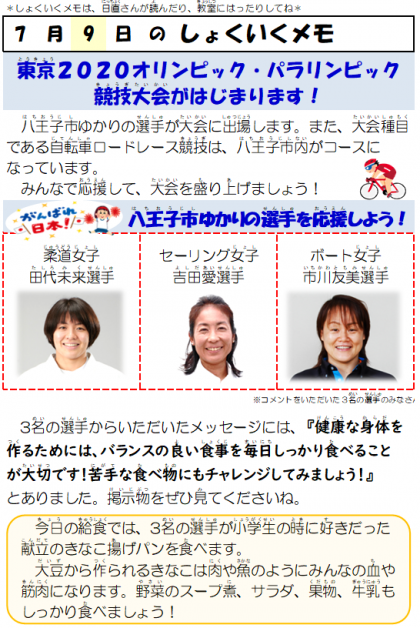 7月9日(金)八王子市ゆかりの選手を応援しよう!