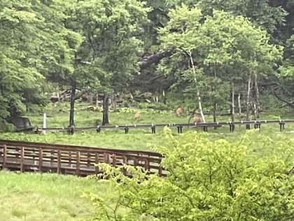 部屋の外には鹿が。