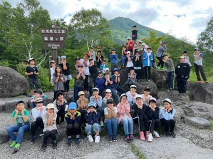 ハイキングゴールで学年写真!