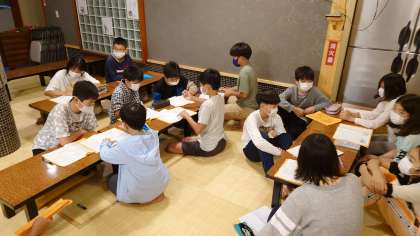 良かったことは、「挨拶、感謝、反応ができた」、「時間やルールを守った」こと。反省すべきことほ、「部屋の中での過ごし方で、足音がうるさかった」、「集合は早いけど、集まってから喋っていた」との意見が出ました。