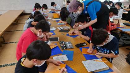 細かい線の彫り方を教わっています。