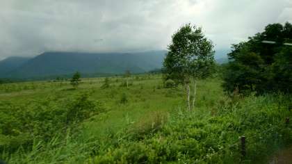 光徳牧場に向かっています。戦場ヶ原から見る景色は、ご覧のようです。今夜も雨が降りそうです。
