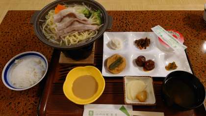 17時45分、食事係が準備を始めました。間もなく夕食です。今夜の献立も、とても美味しそうです。