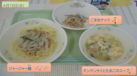 【献立】 ・ジャージャー麵 ・チンゲン菜と卵のスープ ・ごまめナッツ ・牛乳今日...