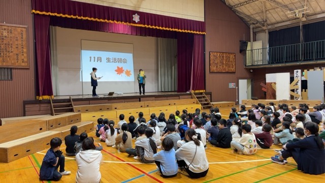 今朝は、生活朝会が体育館で行われました。校長先生からは、体調管理に気を付けながら...