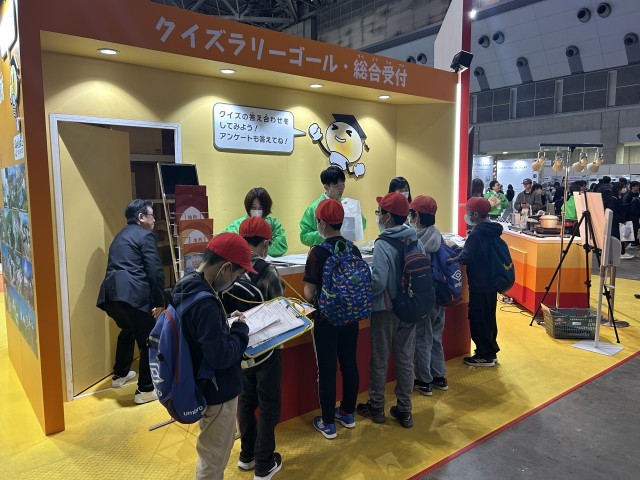 学校で事前に調べたブースを訪問して、ワークシートにまとめていました。ガイドの方の...