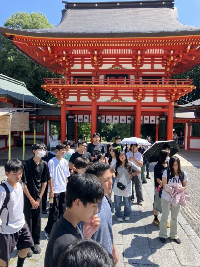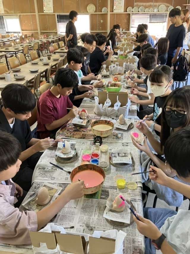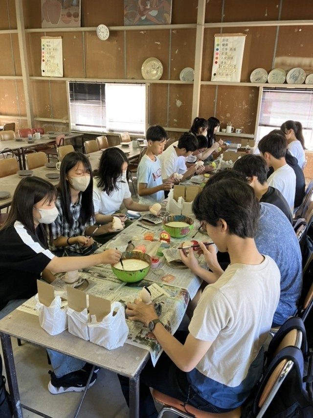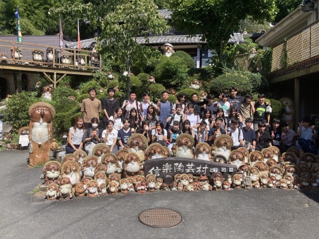 2組は、信楽陶芸村でたぬきの置物の絵付け体験を行い、近江神宮に行きました。