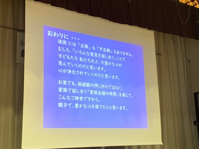 土曜登校日となった10月11日は、学校公開と同時開催で、道徳教育地区公開講座を実施しました。全学年で道徳授業を実施し、意見公開会&道徳疑似体験授業も実施しました。保護者・地域に方々にも参加いただき、道徳教育・授業の必要性を、大人もみな「考え、議論」しました。