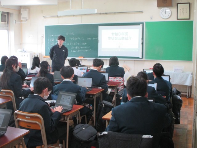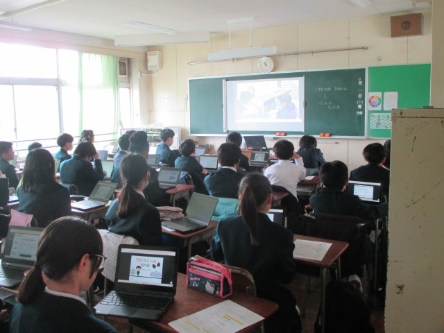 4時間目には生徒会活動紹介。先輩たちが作った生徒会や専門委員会の紹介動画で、どんな活動をするのか、興味深く学んでいました。