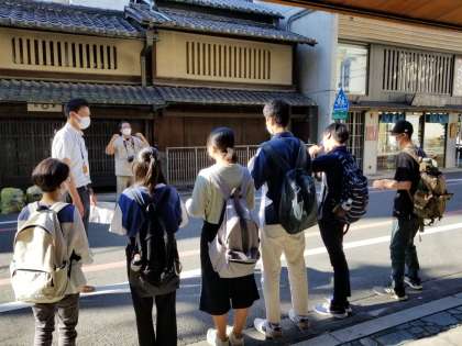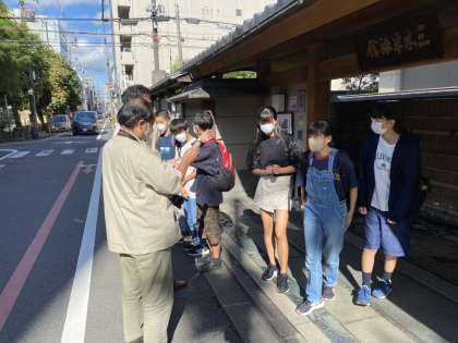 すべての班が出発チェックを終え、宿舎前で班写真を撮って、いよいよスタートです。(3学年)