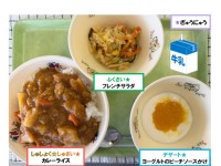 [11月26日のメニュー]・カレーライス・フレンチサラダ・ヨーグルトのピーチソースかけ 今日の給食には「カレーライス」が登場しました!人気献立ランキングでも常連のメニューですね!スパイスの香りと野菜...