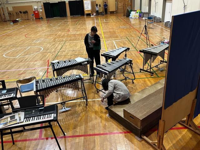 そして、教職員も現在、舞台づくりや楽器の配置、小道具づくり等の準備をしています。