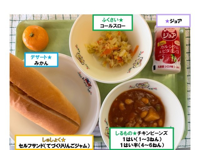 今日の給食では、今が旬の「りんご」を使用して、手作りりんごジャムを作りました!